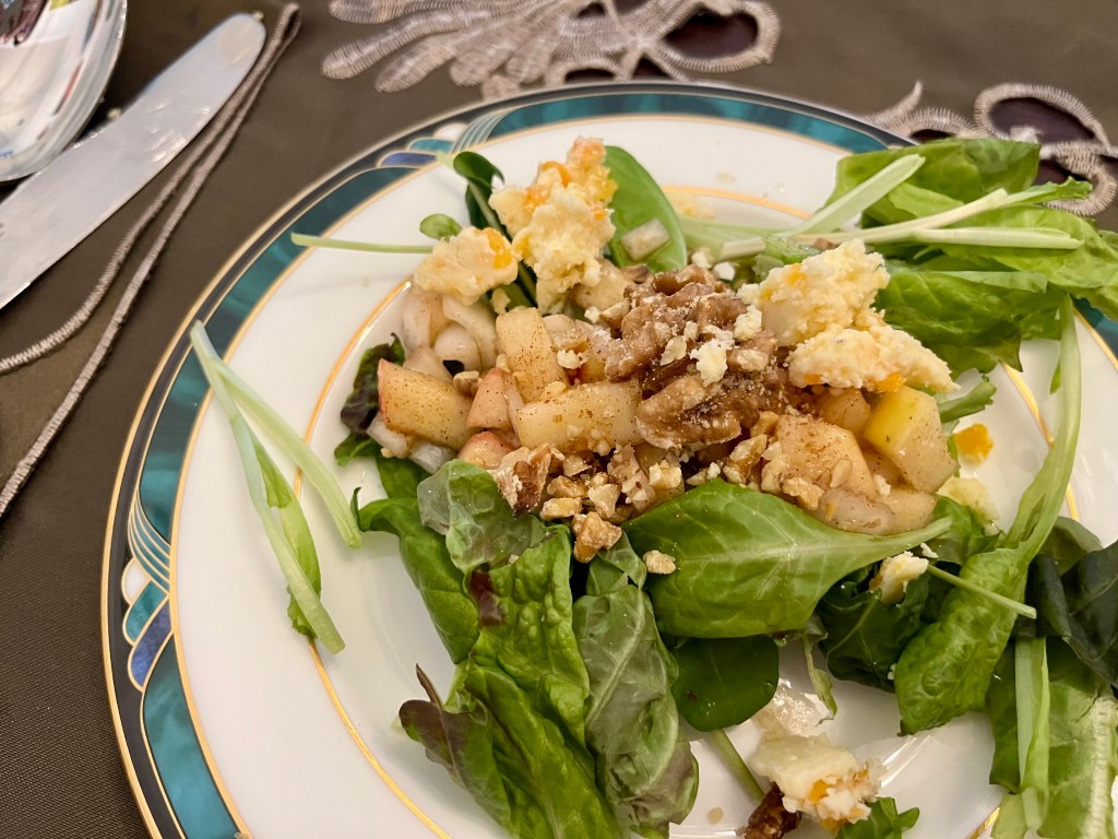 I recently needed to make a salad to take to a holiday dinner, and I stumbled across this Apple Walnut Salad recipe. I decided to adapt it for the arugula and red lettuce that was ready to harvest from my countertop garden. I also broke it down into components for maximum portability. Salad: Dressing: