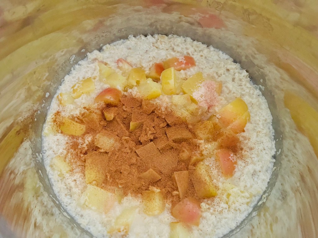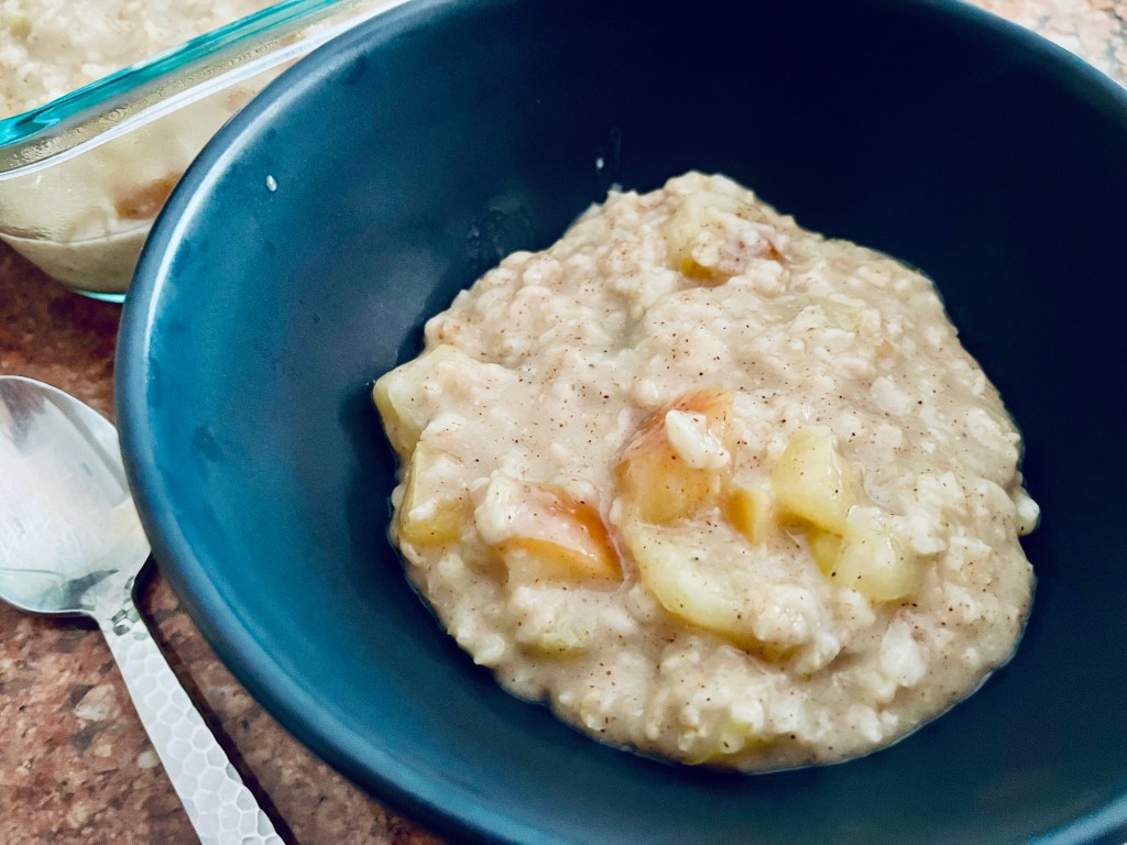 Screw steel-cut oats. I never liked the texture, and I never will. I make Minimalist Baker’s Instant Pot Oats with regular old rolled (gluten-free) oats, and they’re creamy and delicious. You mix a cup of oats with 2.5 cups liquid (a mix of dairy-free milk and water), and pressure cook them for 2 minutes with a 10-minute release. I add two chopped apples on top before pressure-cooking, without mixing. After cooking, I add a spoonful of maple syrup, a pinch of salt, and half a teaspoon cinnamon and mix it in.