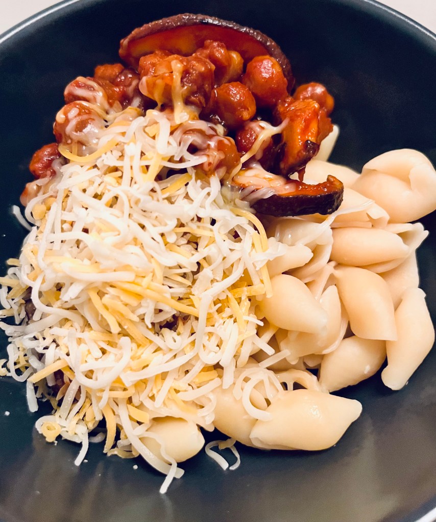 The Harissa Lemon Chickpeas are a close second. They’re slightly spicier, but versatile and zingy. I like them with couscous and yogurt. I’ve also used them as a shortcut in pasta recipes, like the one pictured above with mushrooms, shells, and cheese.