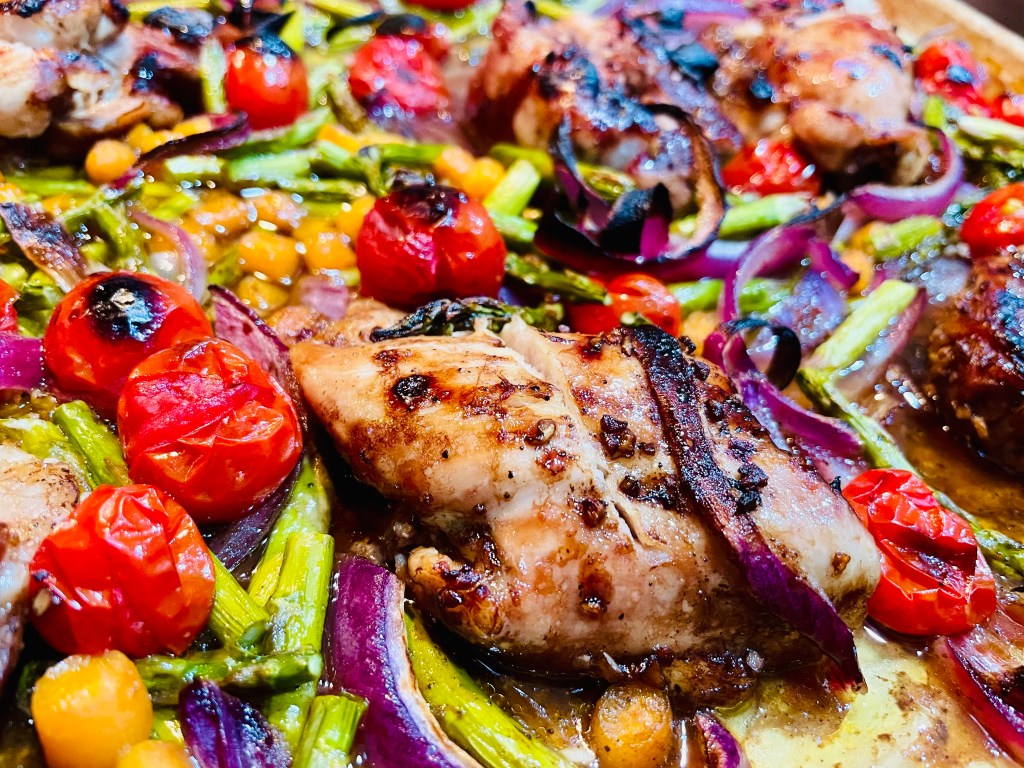 - Cooked: Greek sheet pan chicken with roasted potatoes and vegetables (sheet pans are the ultimate meal prep hack), salmon bites, crispy air fryer chickpeas, tzatziki sauce, chocolate chip cookies.