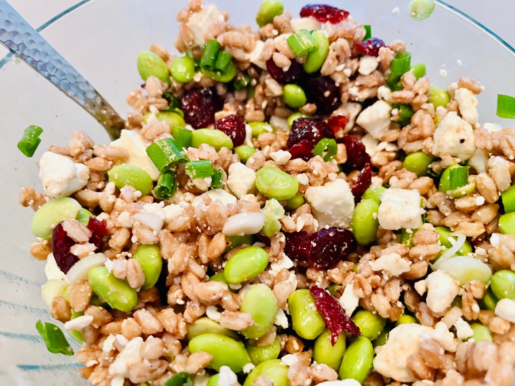 Not gluten-free, unfortunately, but it can be if you swap out the farro for brown rice. I saw this recipe in Erin Clarke’s Well Plated cookbook and I wanted to try it out. I cooked the farro in the Instant Pot and then dressed it with olive oil, balsamic vinegar, salt and pepper. Then I mixed in thawed edamame, dried cranberries, green onions, and feta. I’m eating it for lunch both by itself and in a wrap.