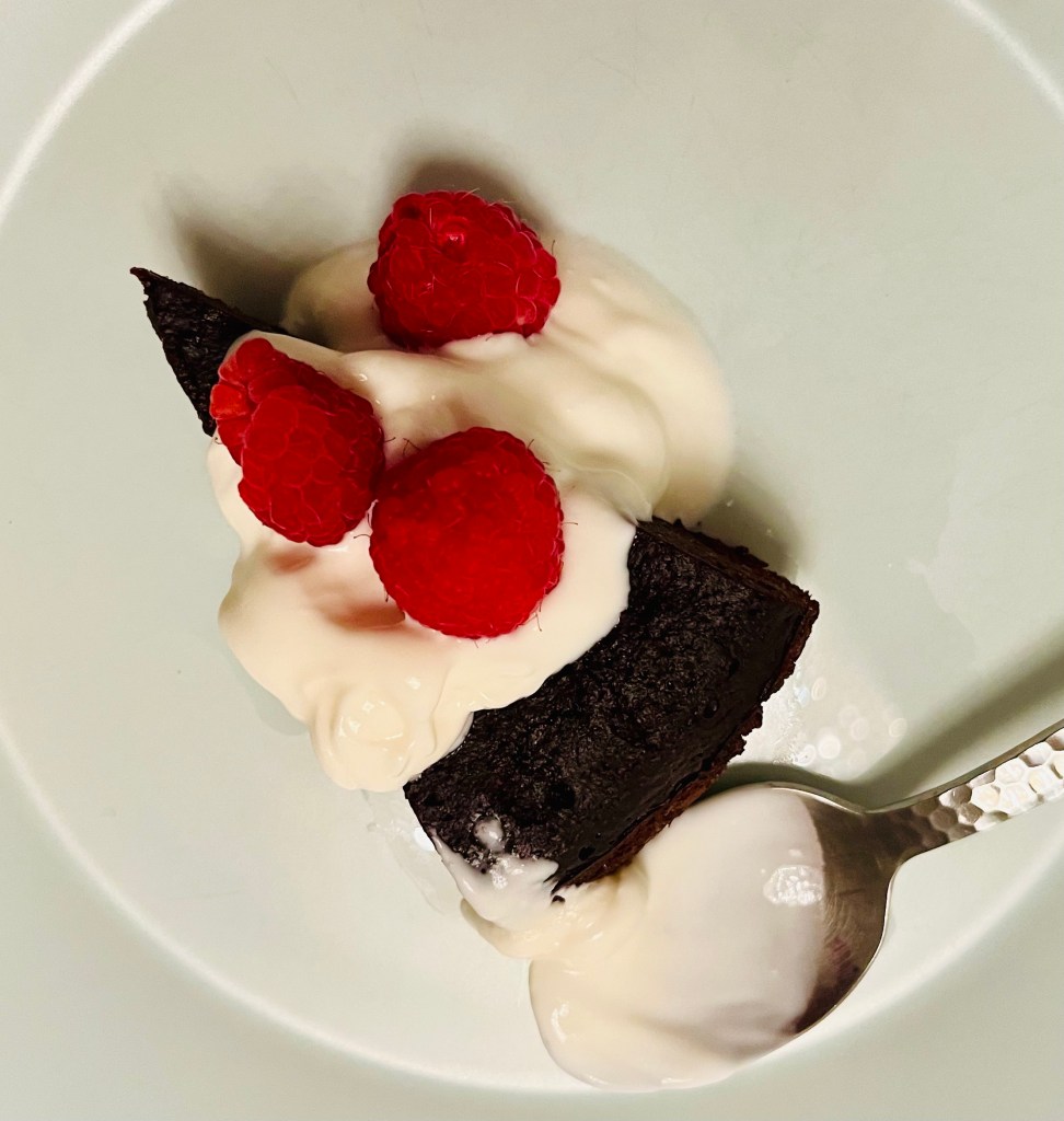 …does not last long enough for a photo of the whole cake. This Might Be The Most Delicious Chocolatey, Fudgy Instant Pot Cake — and it’s my go-to cake for holidays, or when I just want to make cake. It’s made with almond flour and somewhere between a regular cake texture and a flourless chocolate cake. Not too light and not too heavy, and delicious with whipped cream and fruit.